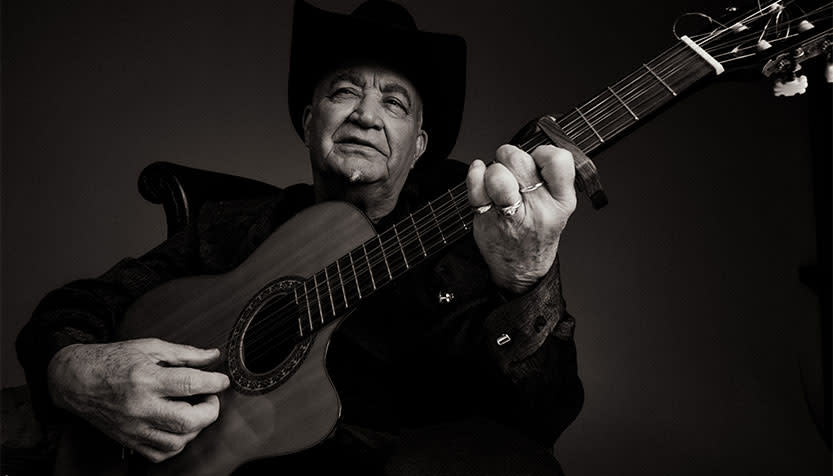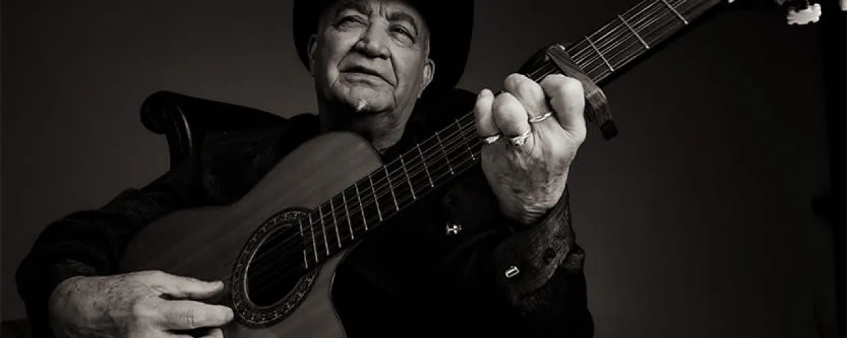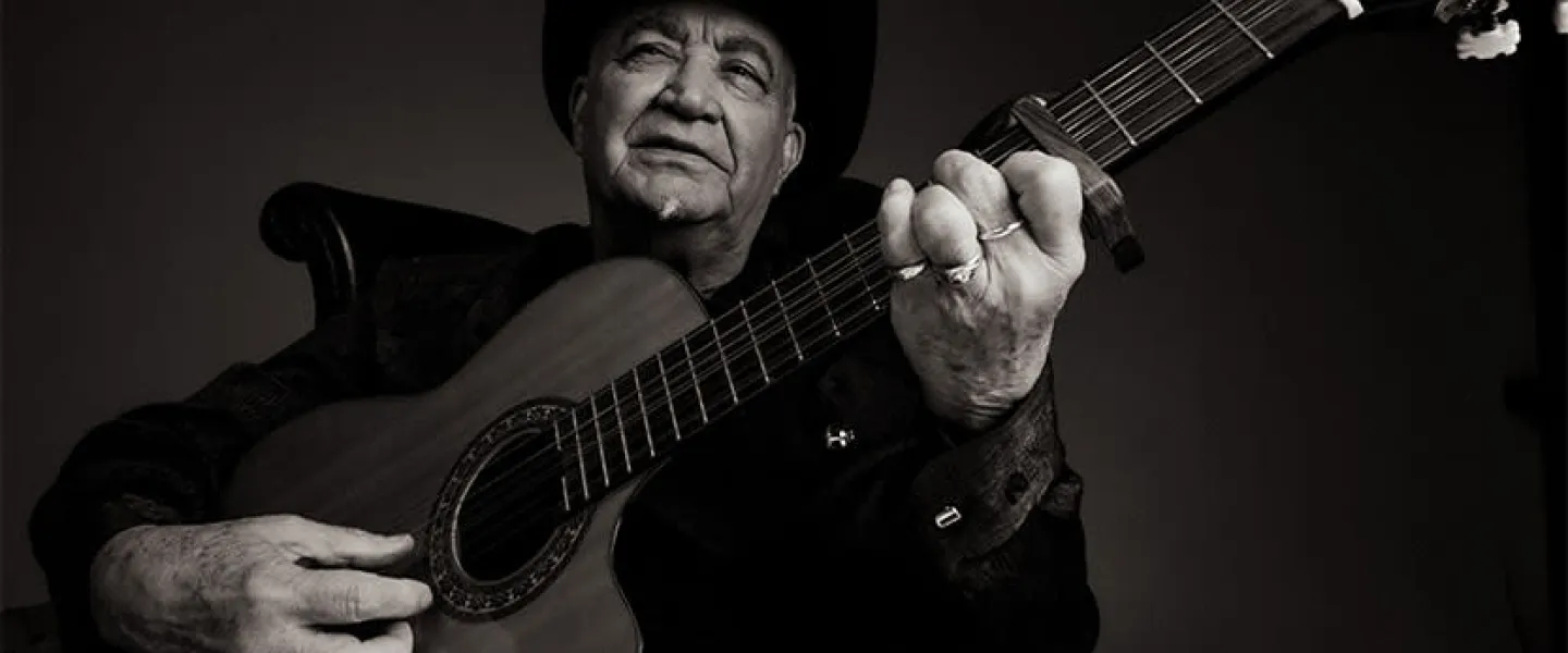 Four-time Latin Grammy Award winner Eliades Ochoa is one of the most celebrated soneros of all time, known for his masterful guitar playing, gravel-edged voice, and signature black hat.