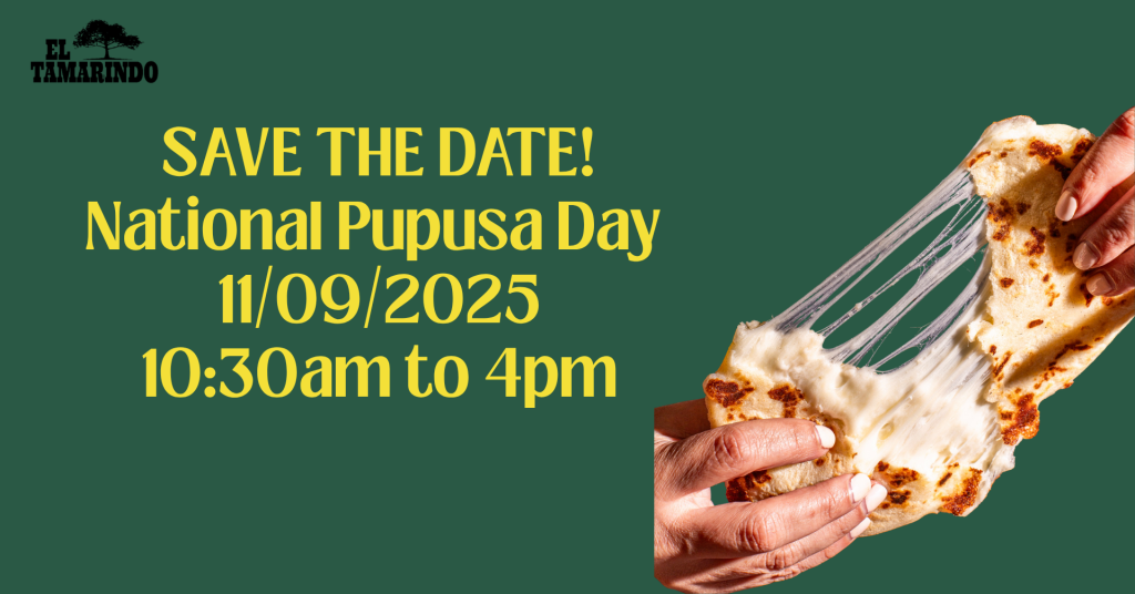 Our Annual National Pupusa Day Celebration is happening on Sunday, November 9th, and we’re thrilled to invite our community to join us from 10 AM to 4 PM. The event will feature a special Pupusa Day menu, live music, and a kids’ pupusa-making workshop, ensuring fun for the whole family.