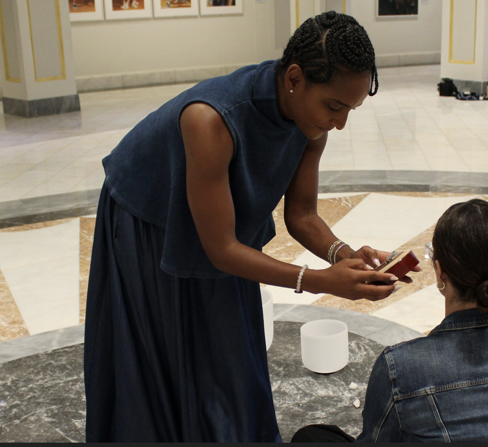 Guided by Tara Aura, a ritual artist and wellness consultant, this workshop begins with a sound healing and meditation experience designed to quiet the mind, release stress, and spark creativity. Surrounded by art in a calming atmosphere, participants will be invited to slow down, breathe deeply, and connect with the present moment. Following the session, enjoy tea, courtesy of Khamsa (a D.C.-based woman-founded tea and tonic company), and conversation with fellow participants as you share reflections, meet new people, and build meaningful connections. This program blends art, mindfulness, and social connection, offering both personal renewal and the joy of coming together.