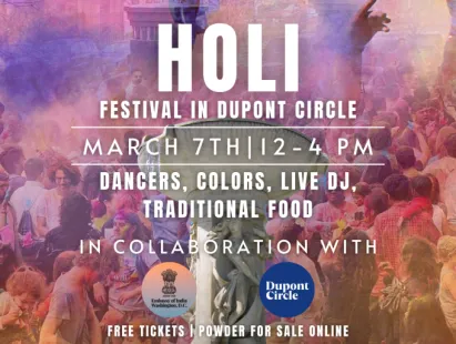 Join the Indian Embassy as we celebrate the Holi Festival in Dupont Circle Park, complete with traditional dancers , powder, and a live DJ.