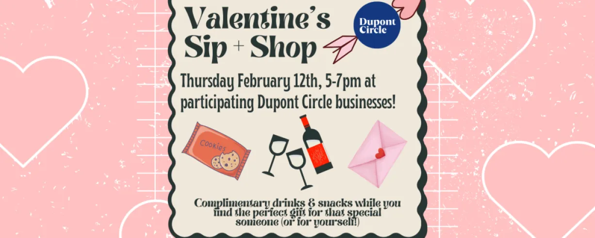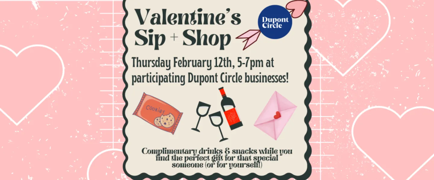 Grab some unexpected treats for yourself or friends while sipping on free wine and non-alc cider during the Dupont Circle BID's Valentine's Sip & Shop event on Thursday, February 12th from 5:00-7:00 PM! At Sip & Shop, we provide free treats and sips while you shop around the block! A perfect way to pamper yourself while you get the perfect gift for your loved ones for Valentine’s Day. Two birds with one stone!