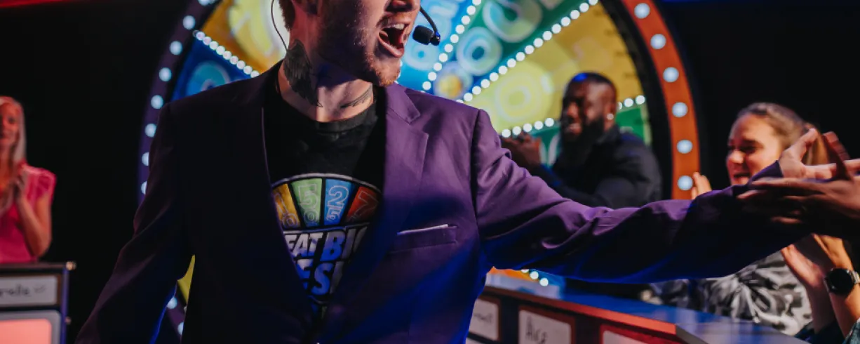 Great Big Game Show, brought to you by The Escape Game, is a live-hosted game show experience. Two teams come on stage to face off in a battle for points and glory!