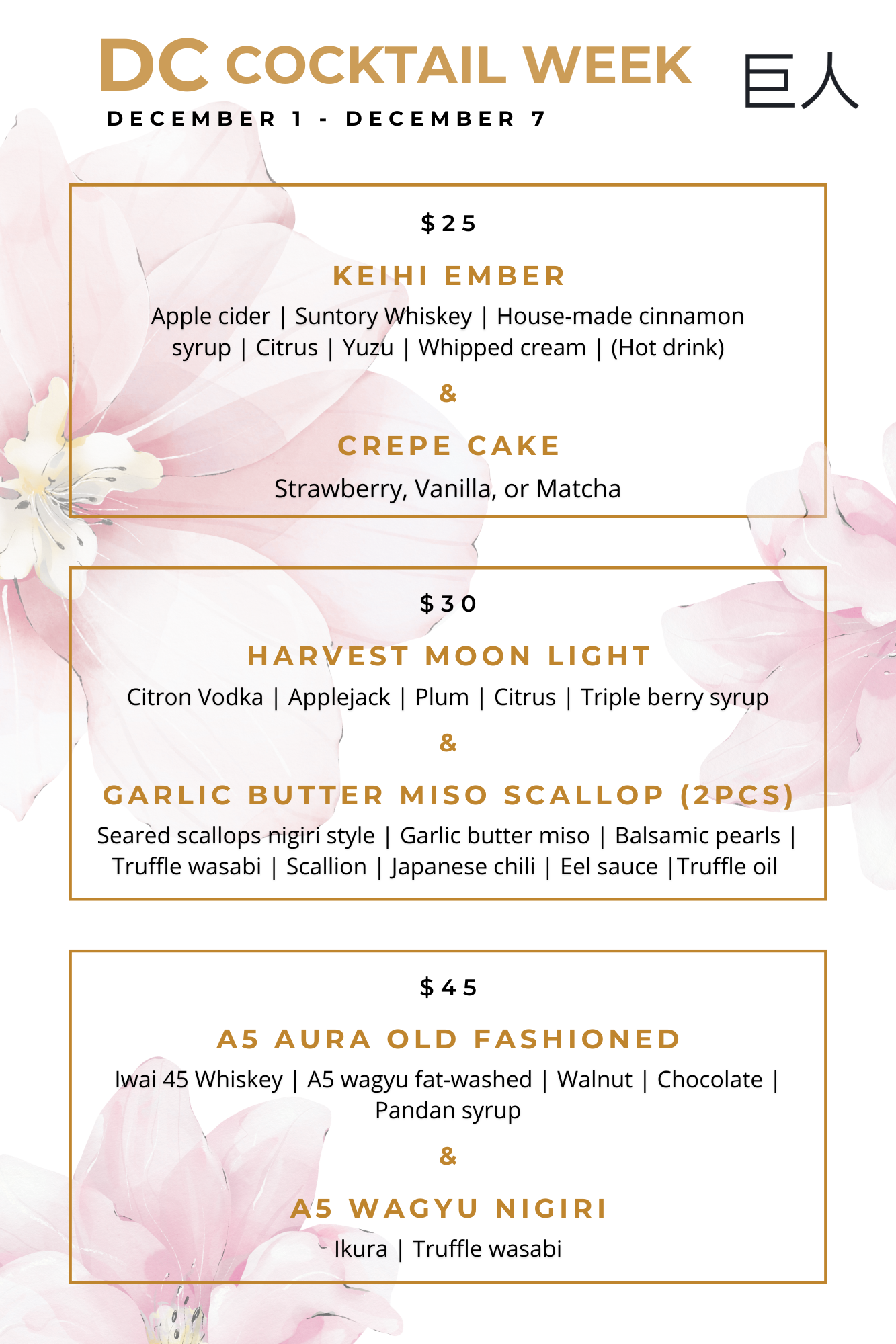 Named Best Sushi by DC Modern Luxury Magazine (2024), a Top 50 Place to Eat in DC by Yelp Elites (2024), and honored with the OpenTable Diners’ Choice Award (2024, 2025), KYOJIN delivers an unforgettable setting for meetings, events and special occasions.