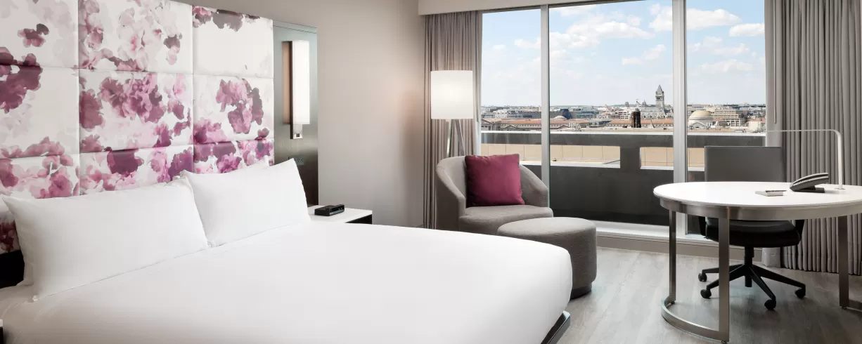The hotel features 367 Guestrooms, including 18 suites a Presidential Suite. All rooms feature a modern desk, platform beds, plank flooring and fiber optic Wi-Fi. Select rooms feature views of the Potomac, National Mall and surrounding sights.