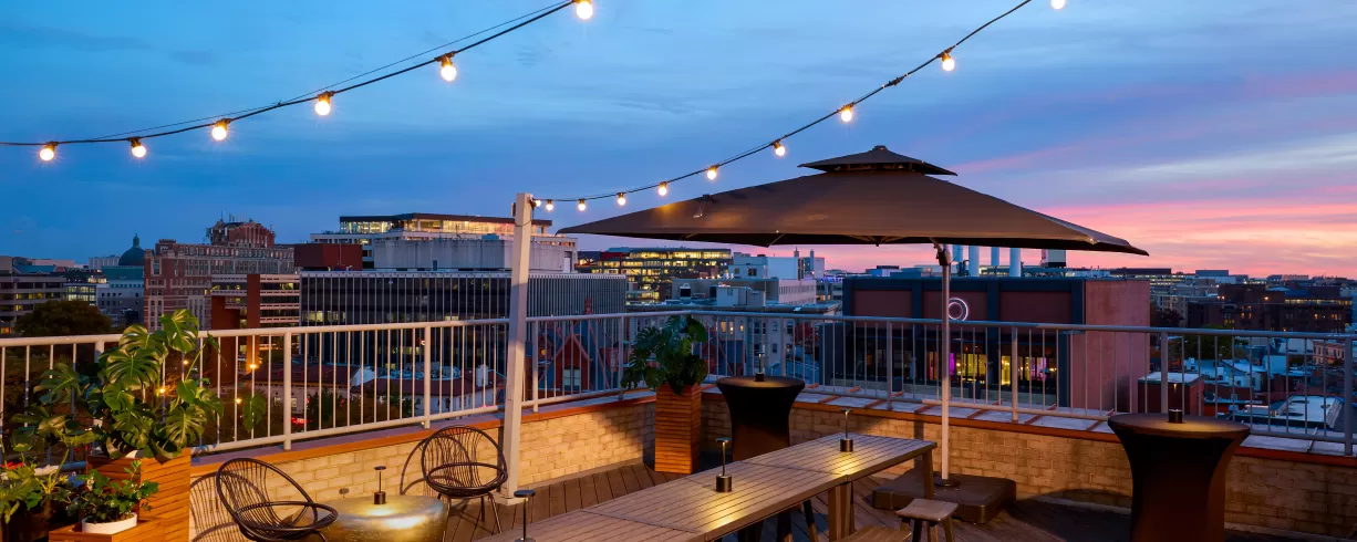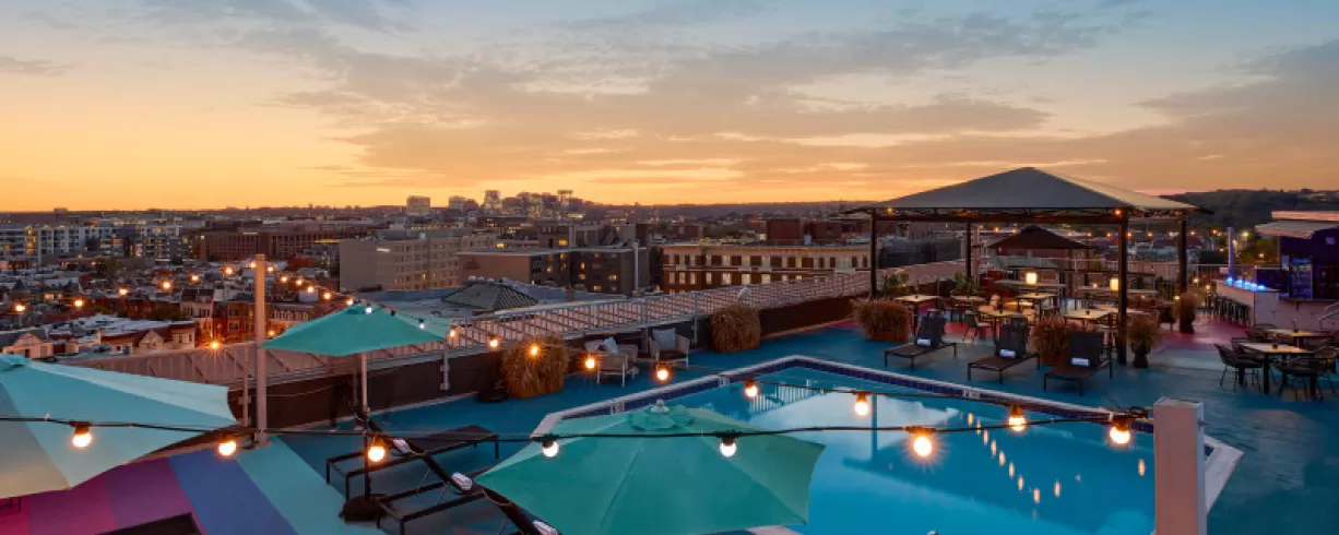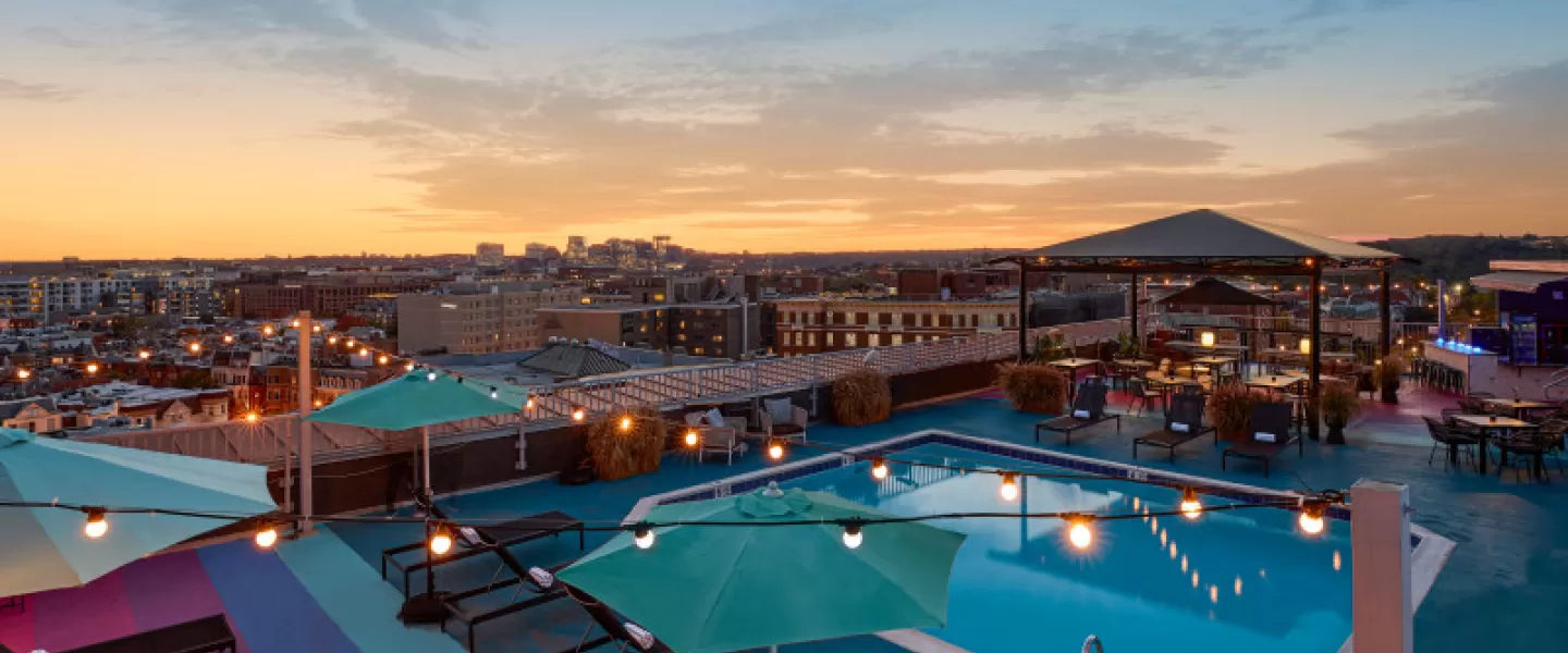 Take in views of the iconic Washington, DC skyline at The Rooftop, our 9th-floor seasonal pool and bar.